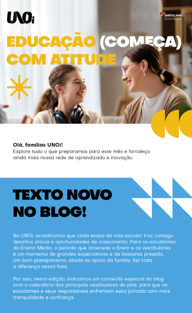 Temos o compromisso de comunicar datas importantes do nosso calendário pedagógico, novidades da marca e itens relevantes de nossas avaliações e nossos projetos. Além disso, também utilizamos a Newsletter UNOi para divulgar os novos textos publicados no blog e os nossos eventos. Assim, nossos parceiros estarão sempre antenados em nossas ações.